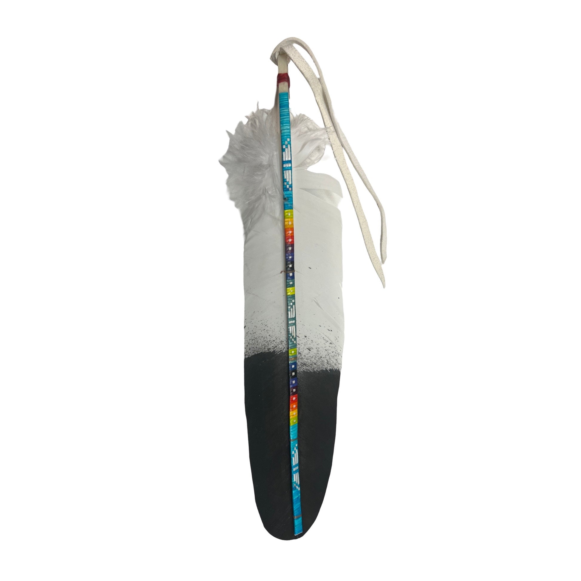 Imitation feathers with quilled center strip made by James Red Cloud!