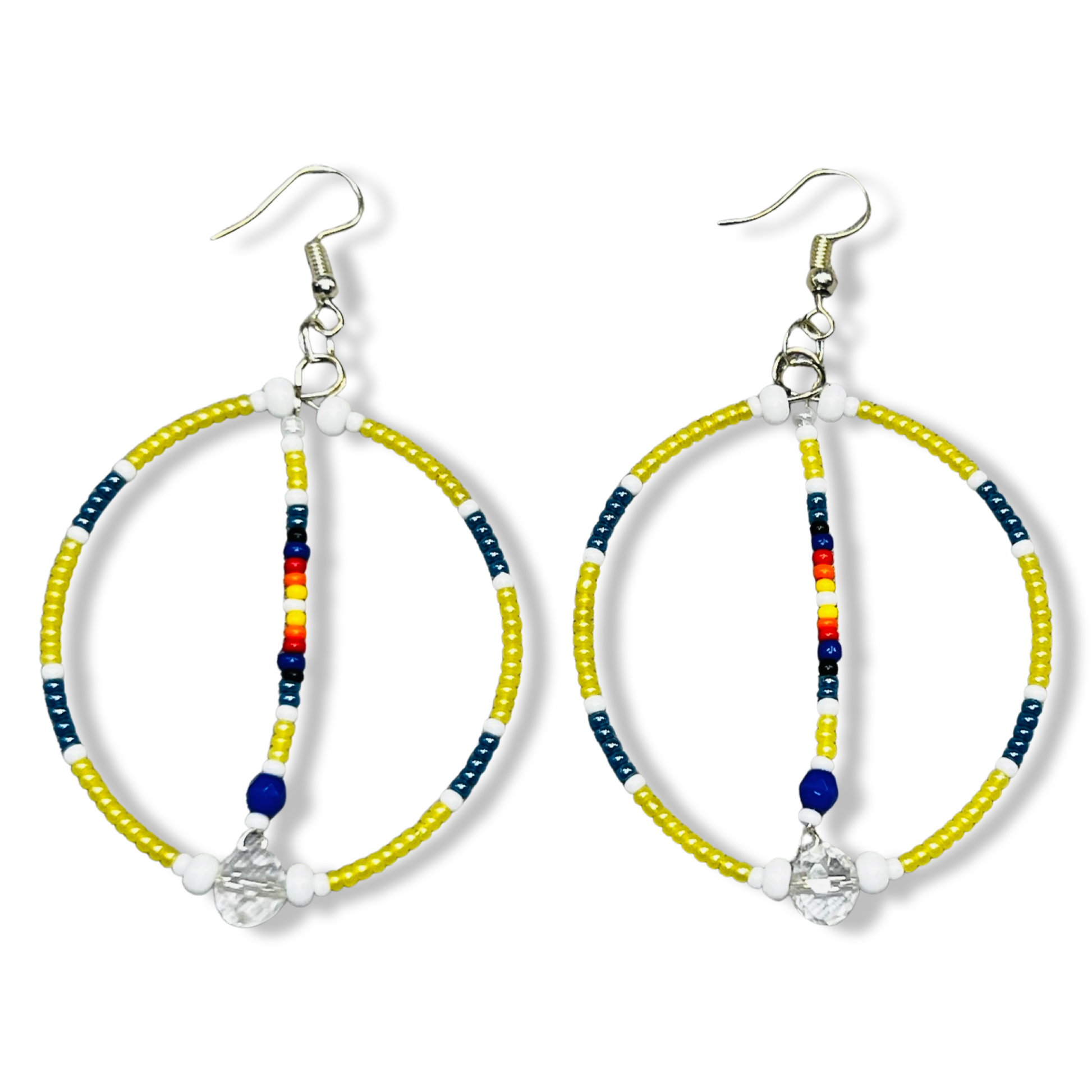 Variety of beaded oval earrings. Made by local artist Lavon Zimiga.