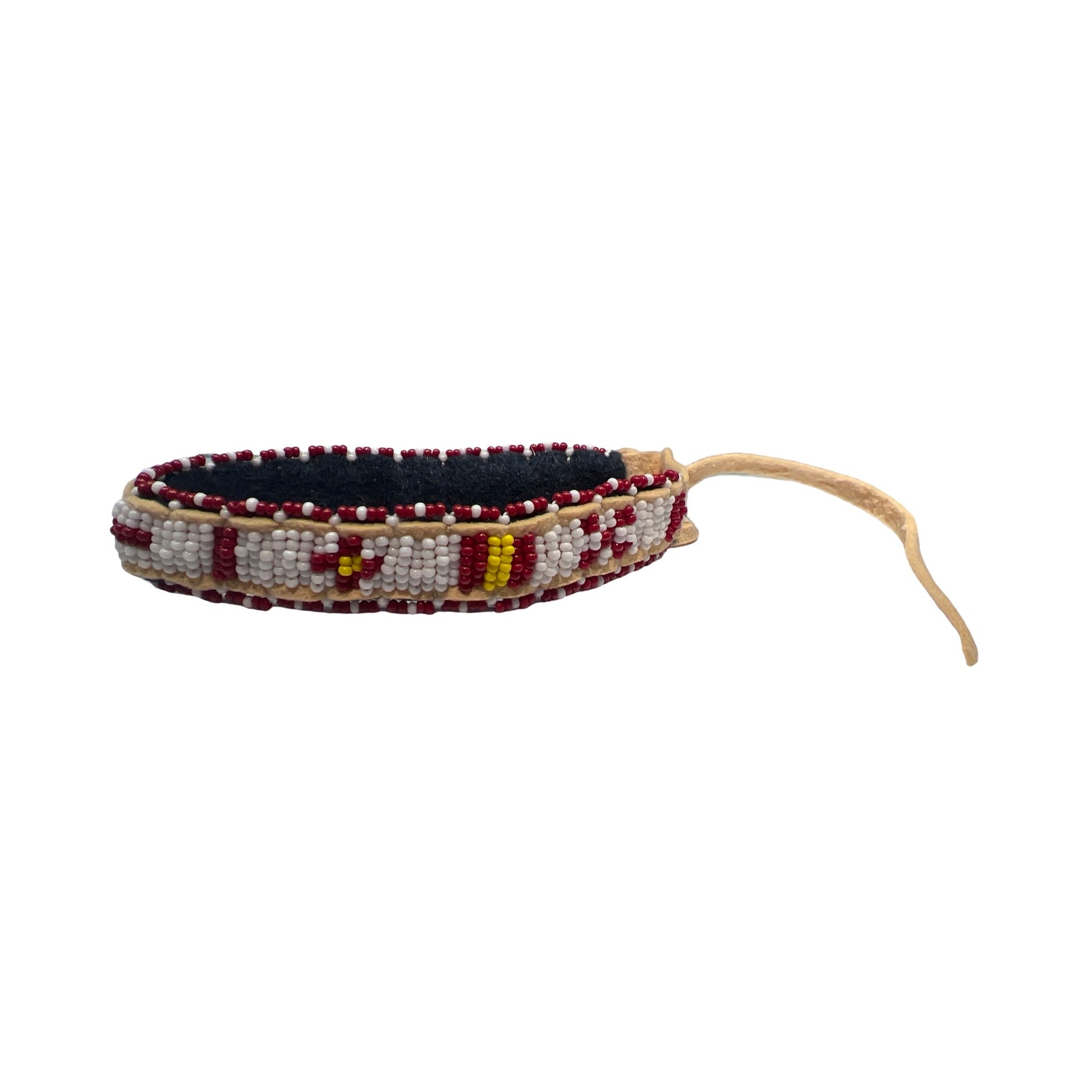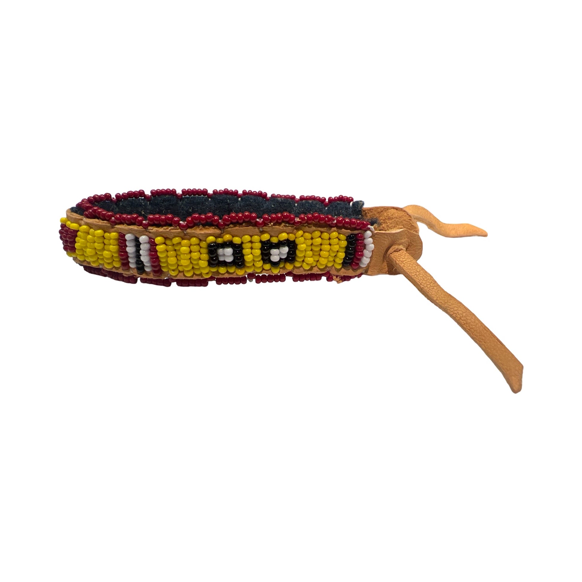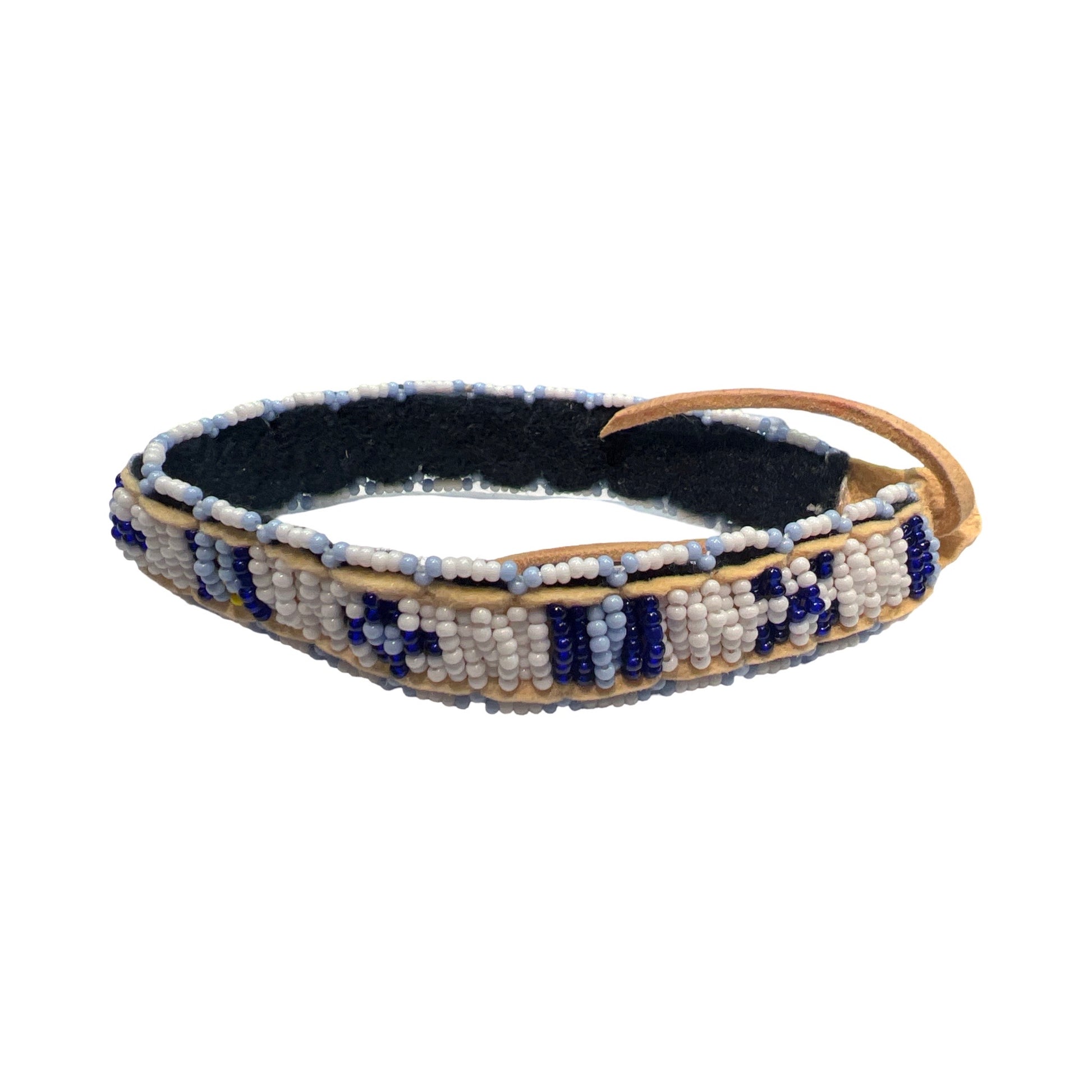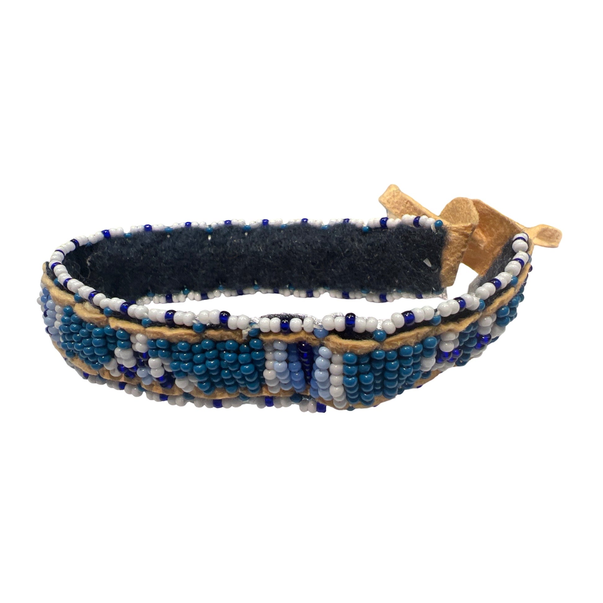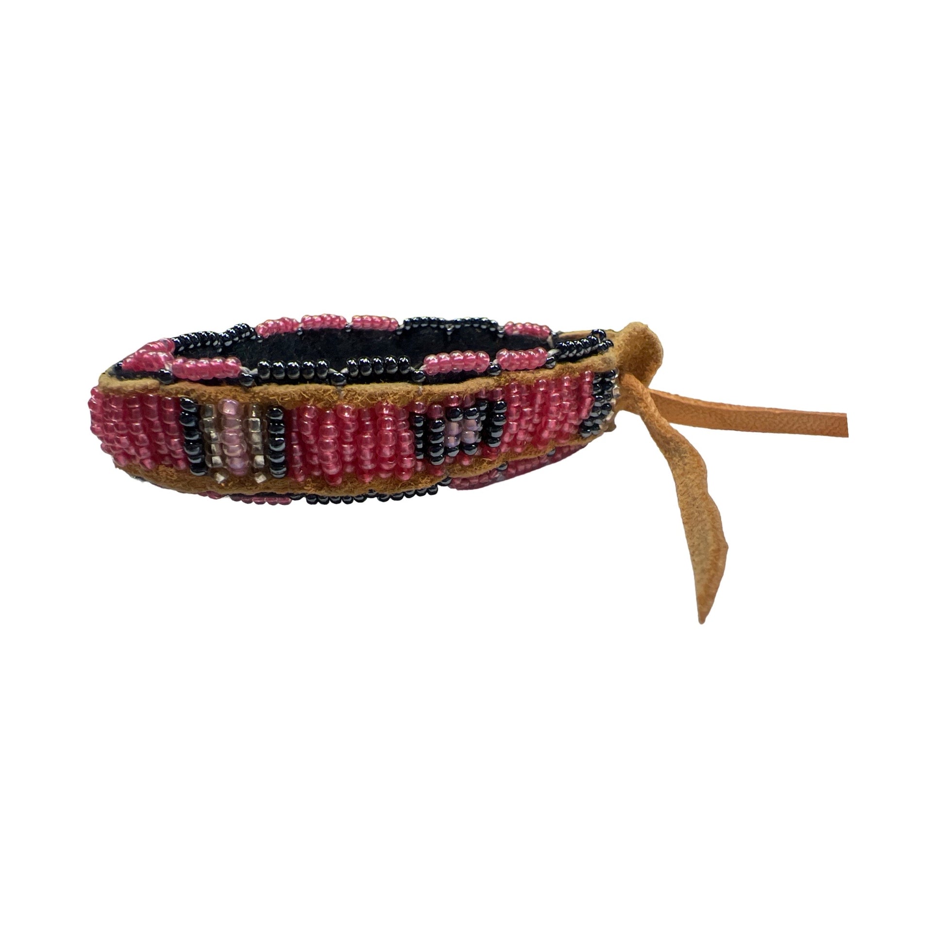 Beaded bracelets on leather strips in various colors and designs made by artist Shawn Espinosa!