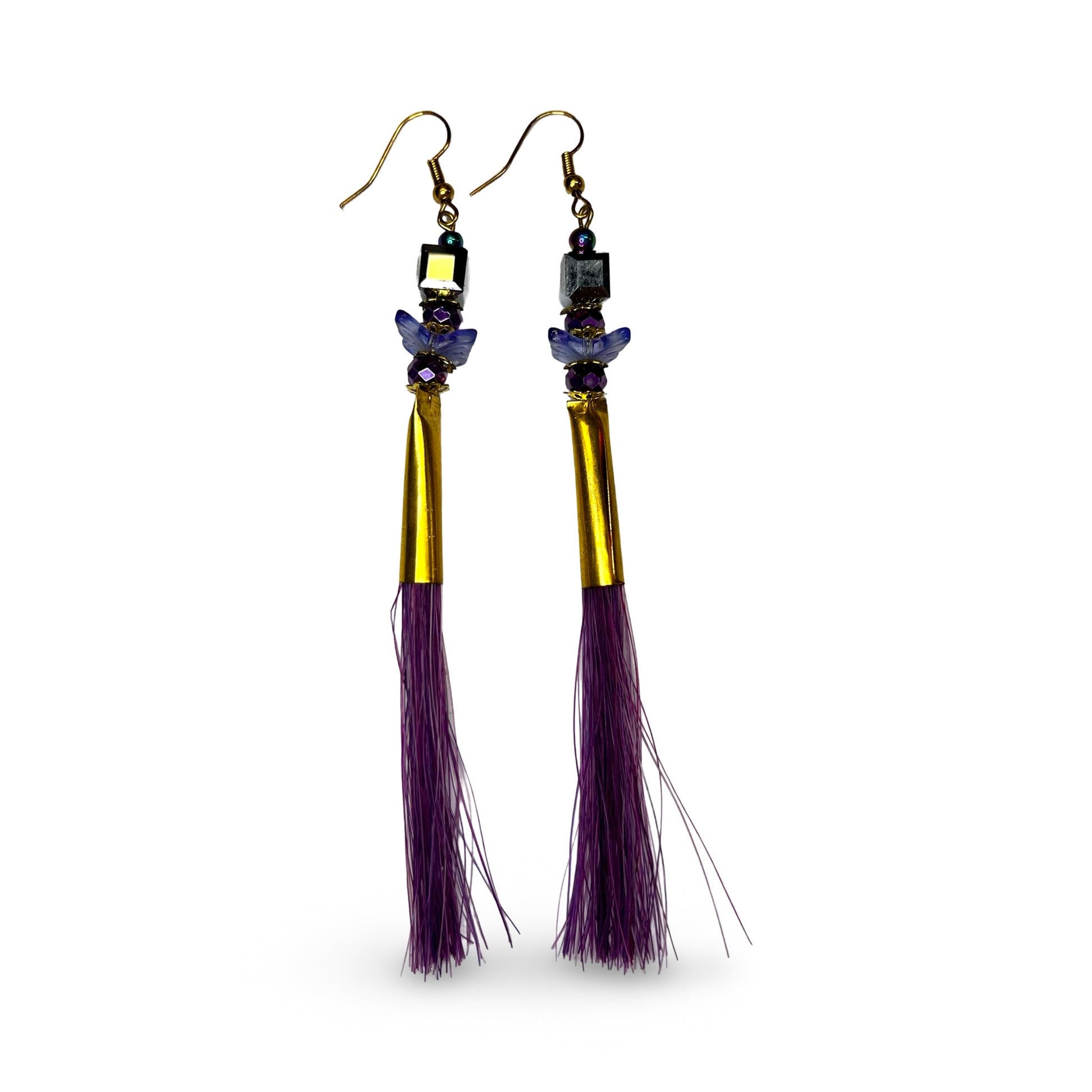 Horse hair earrings with charm & bead adornments made by artist Stephanie Garnier!