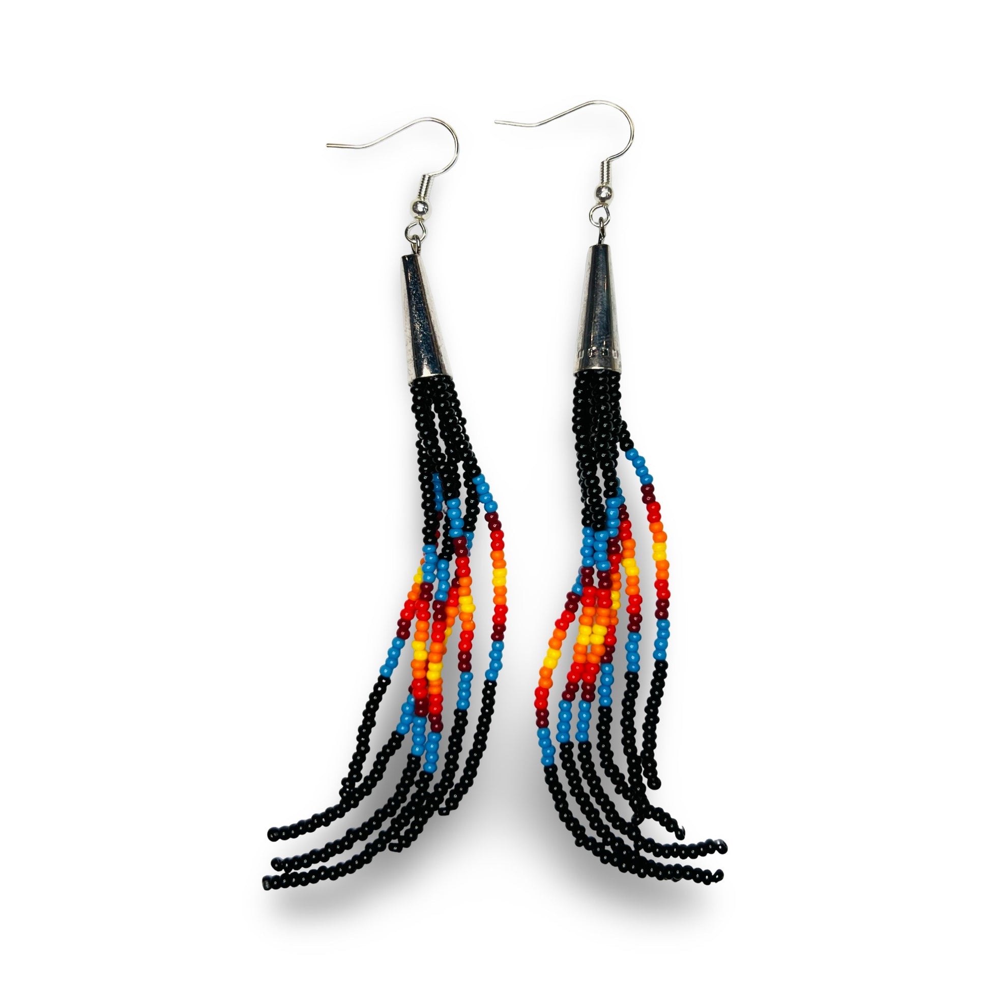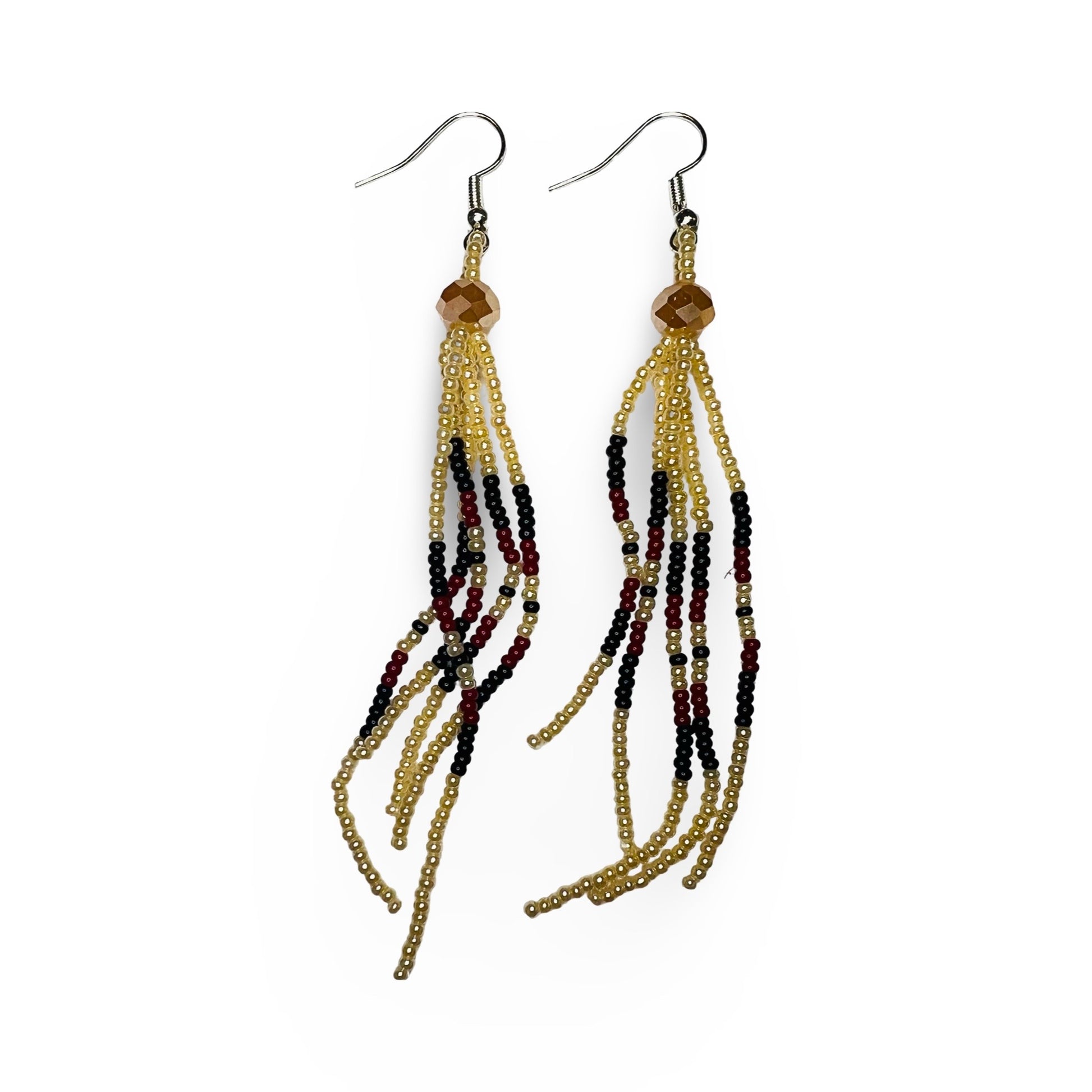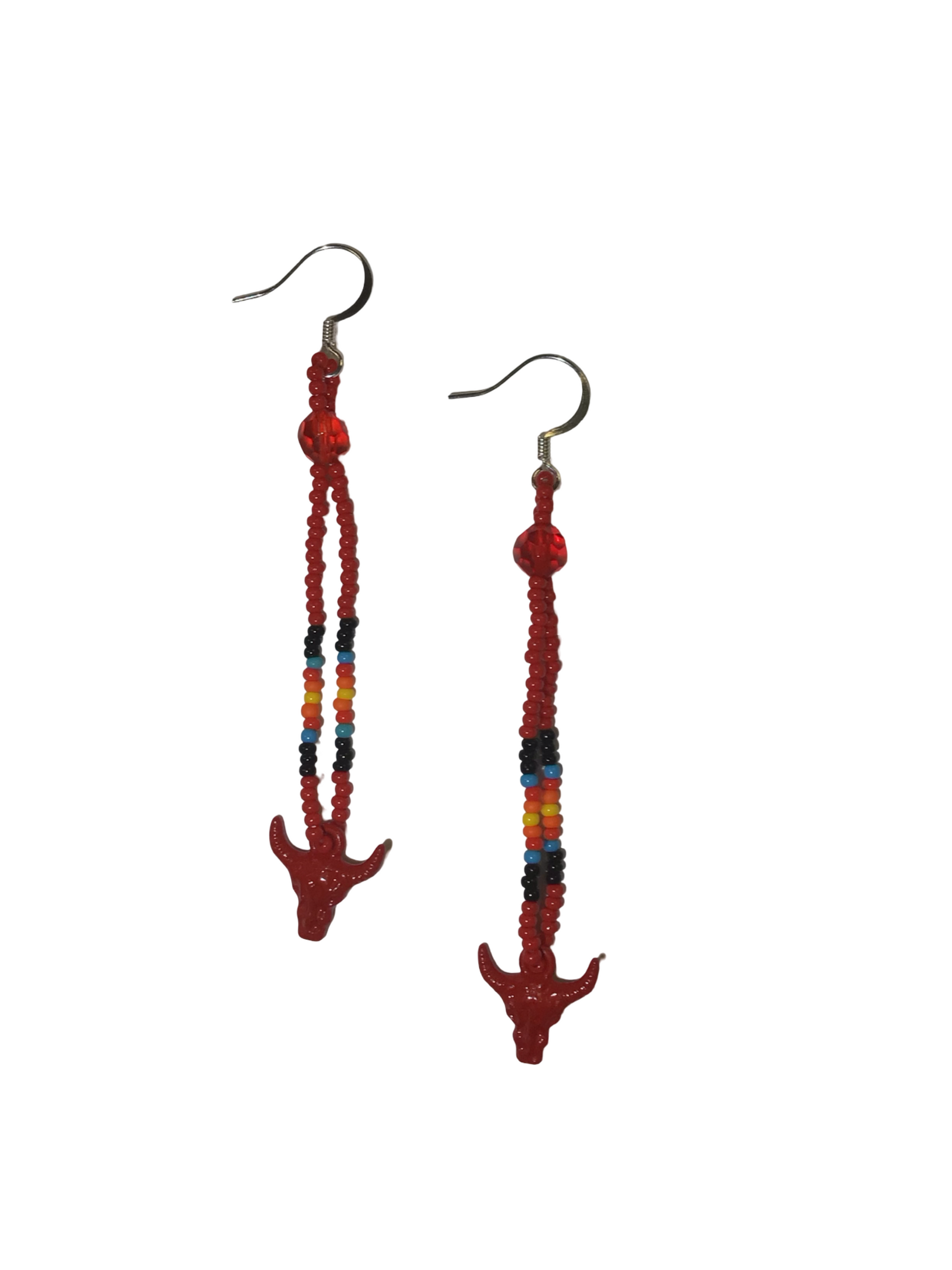 Two-strand beaded earrings with charm made by local artist Sheryl Her Many Horses! These are the perfect touch to any outfit.