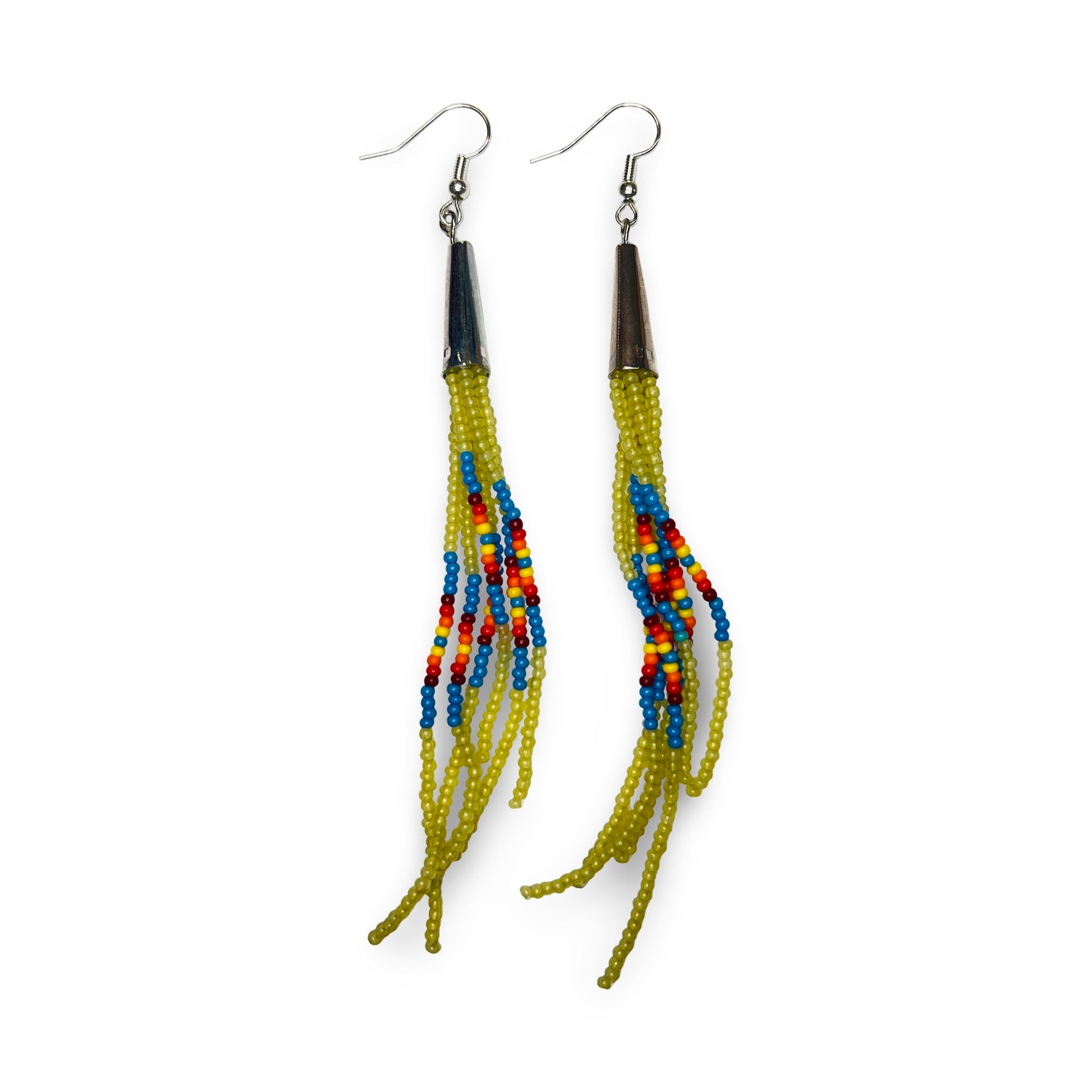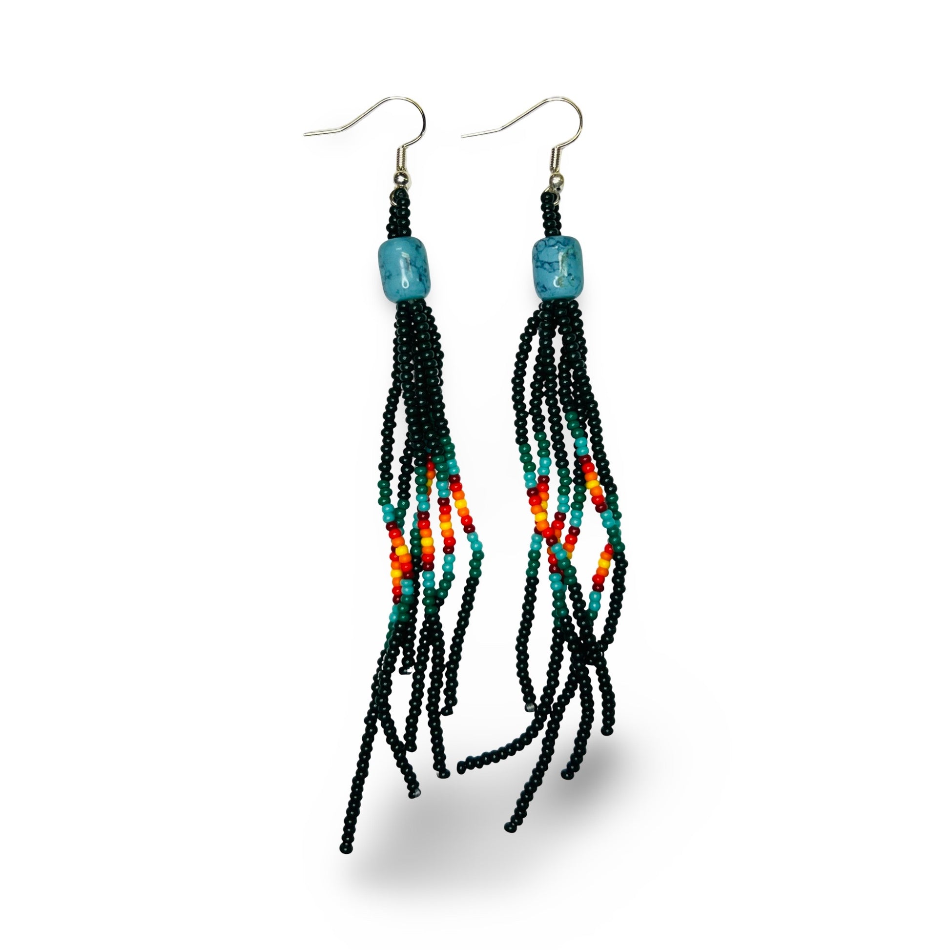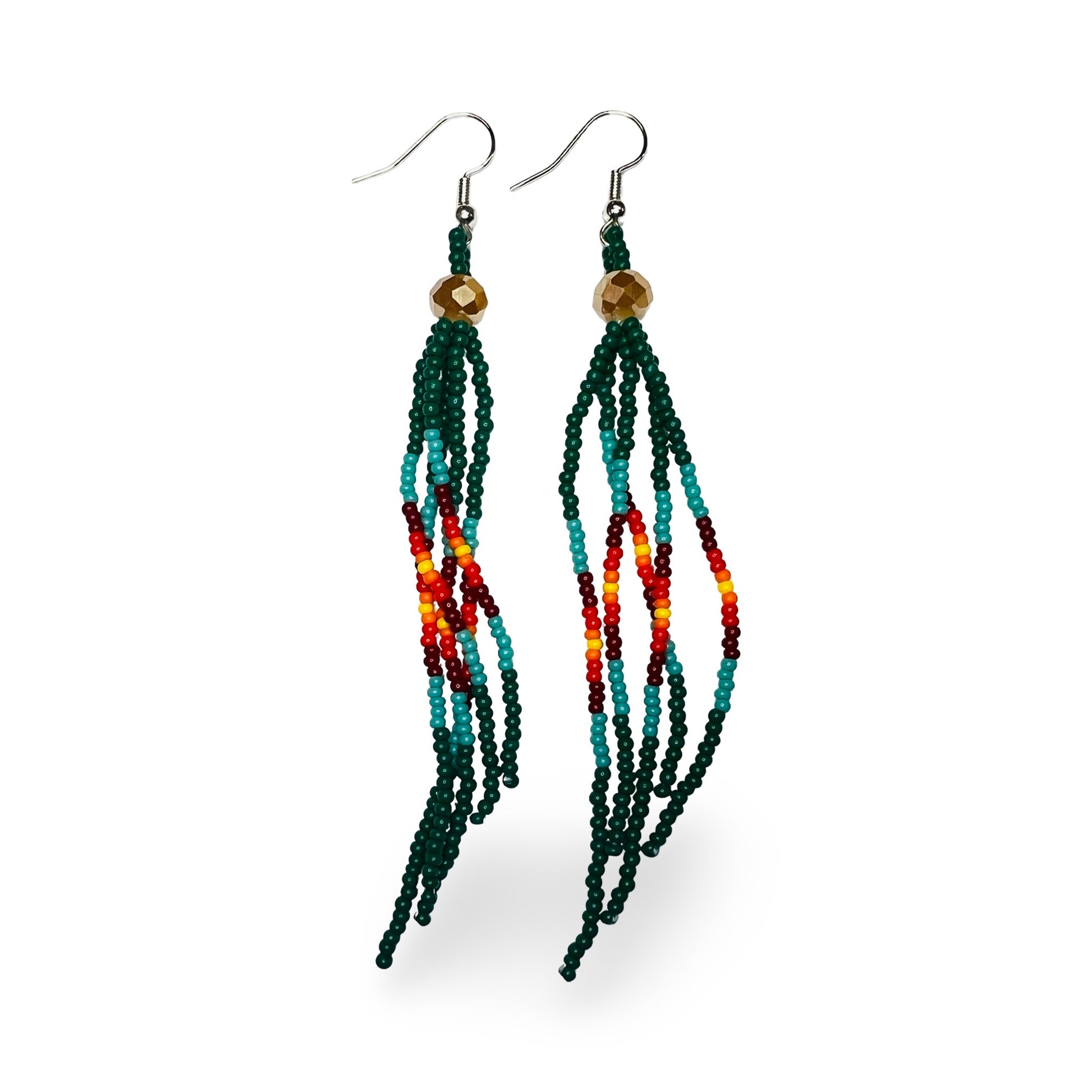 Two-strand beaded earrings with charm made by local artist Sheryl Her Many Horses! These are the perfect touch to any outfit.