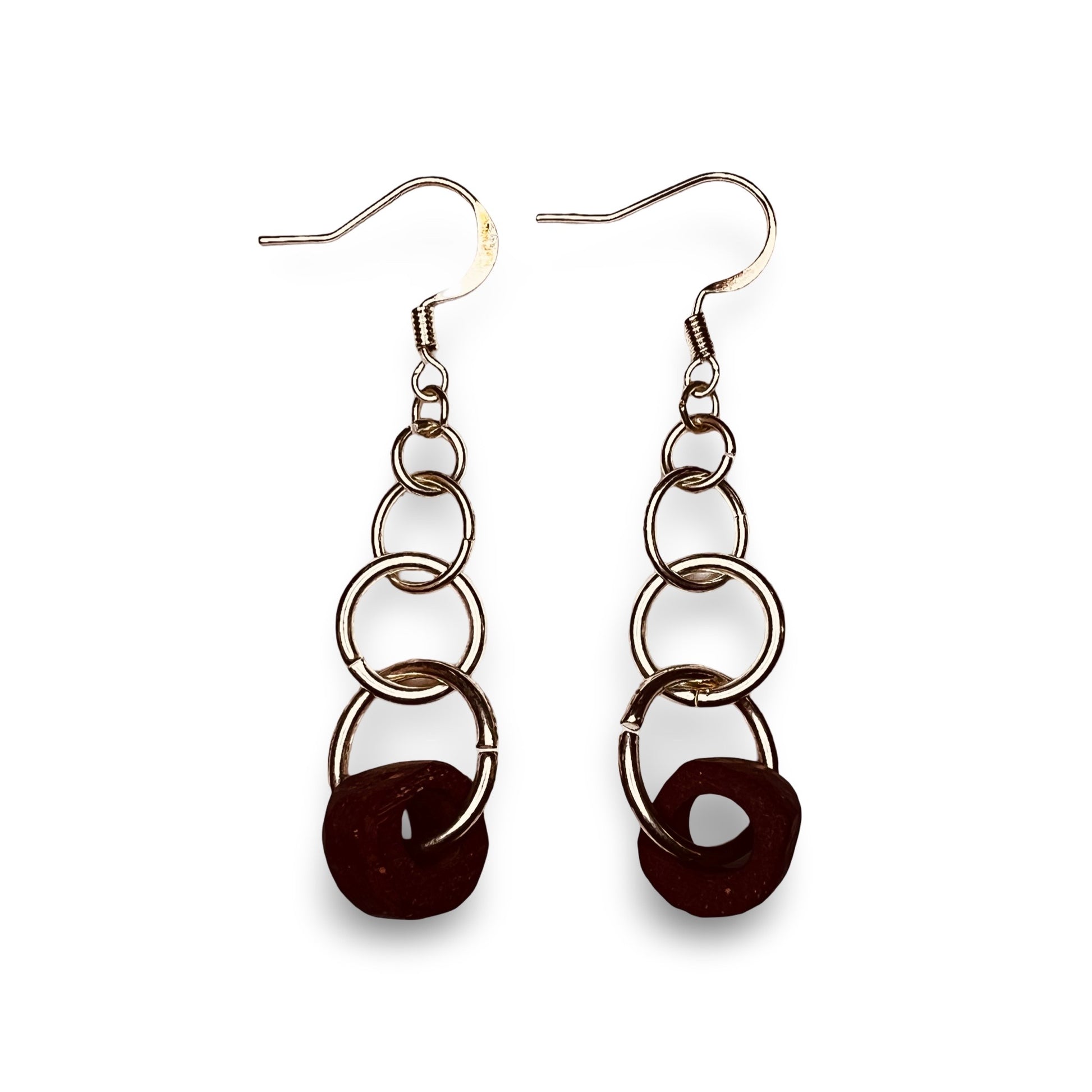 Earrings made from pipestone sourced from the area, crafted by artist Virgil Poafpybitty!
